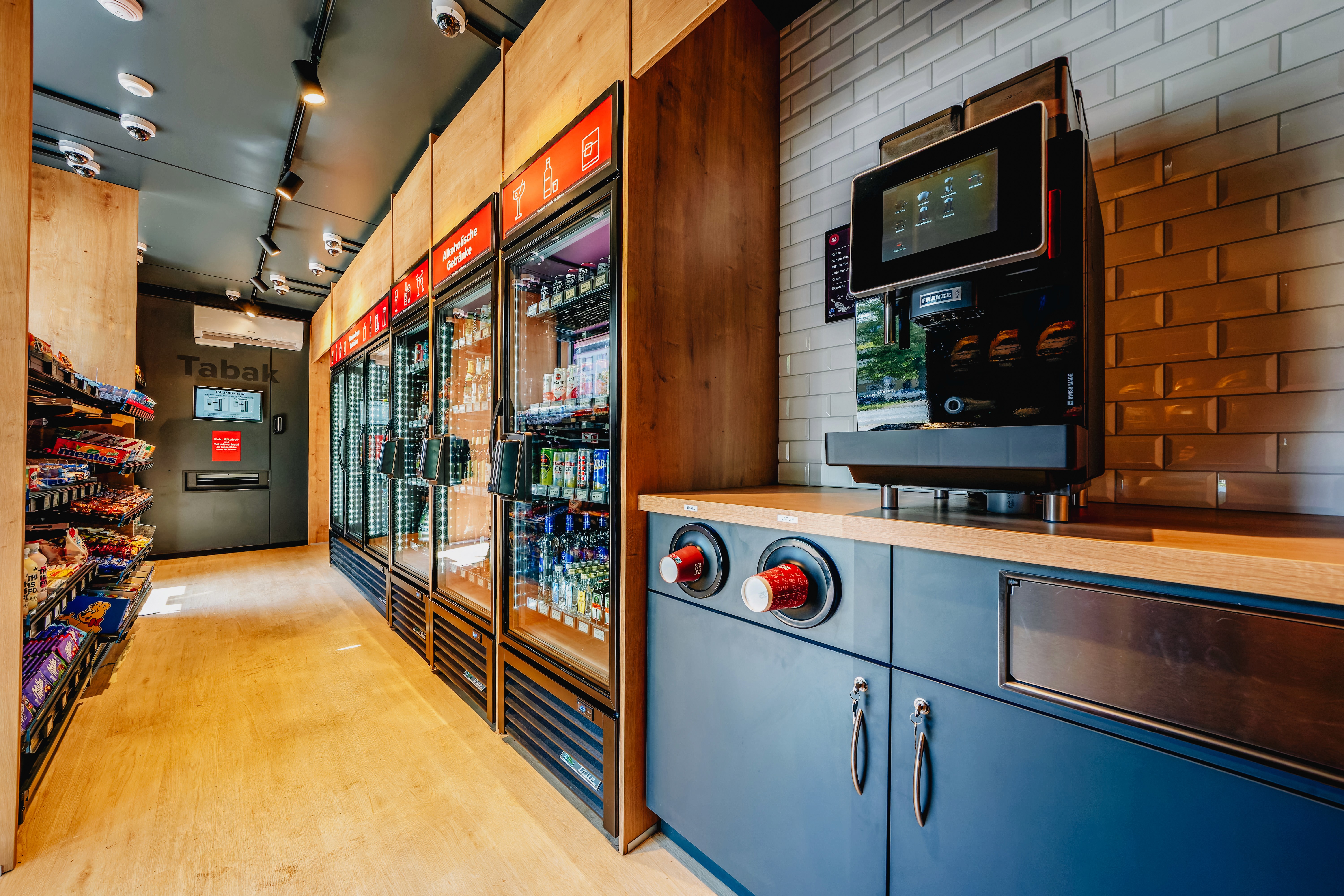 A modern, premium in-store experience, including fresh coffee, chilled beverages, snacks, tobacco vending, and everyday essentials